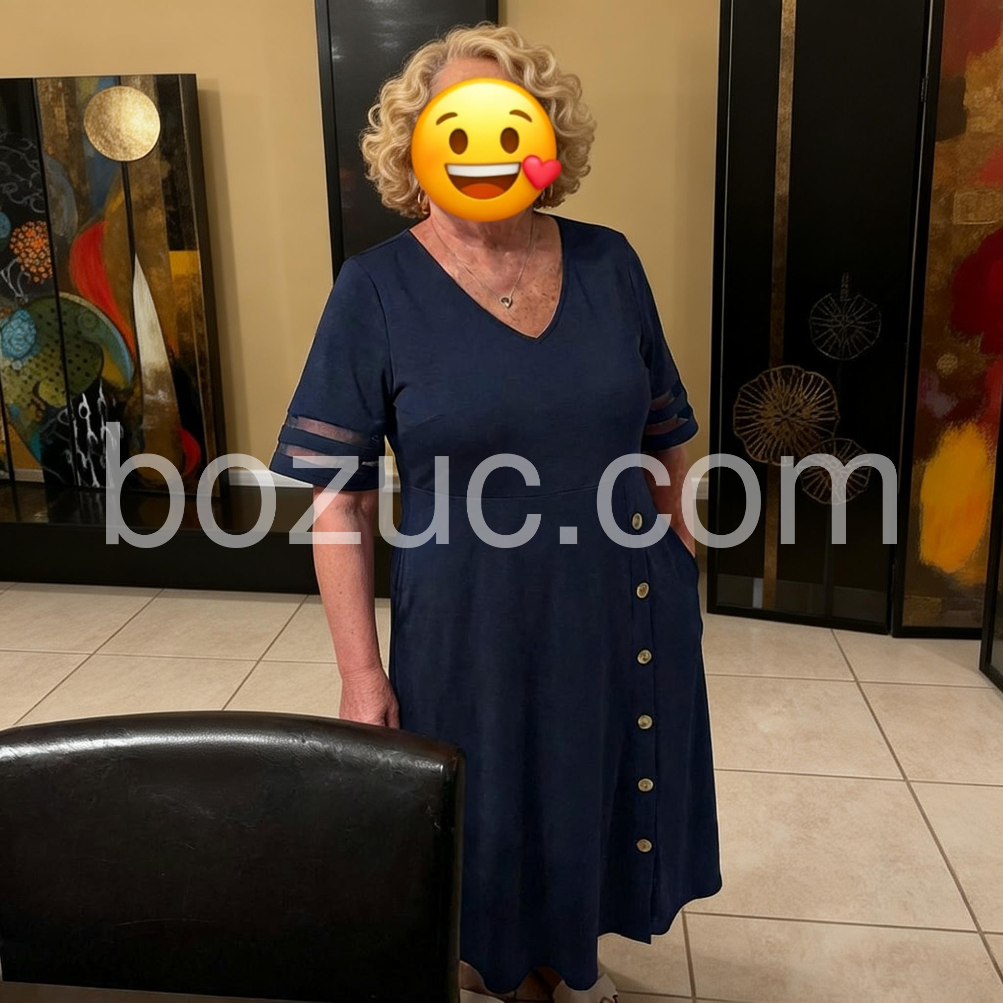 I absolutely love this dress! The navy blue color is so rich, and the pockets are a total game changer. It fits perfectly and is incredibly flattering around the waist.
