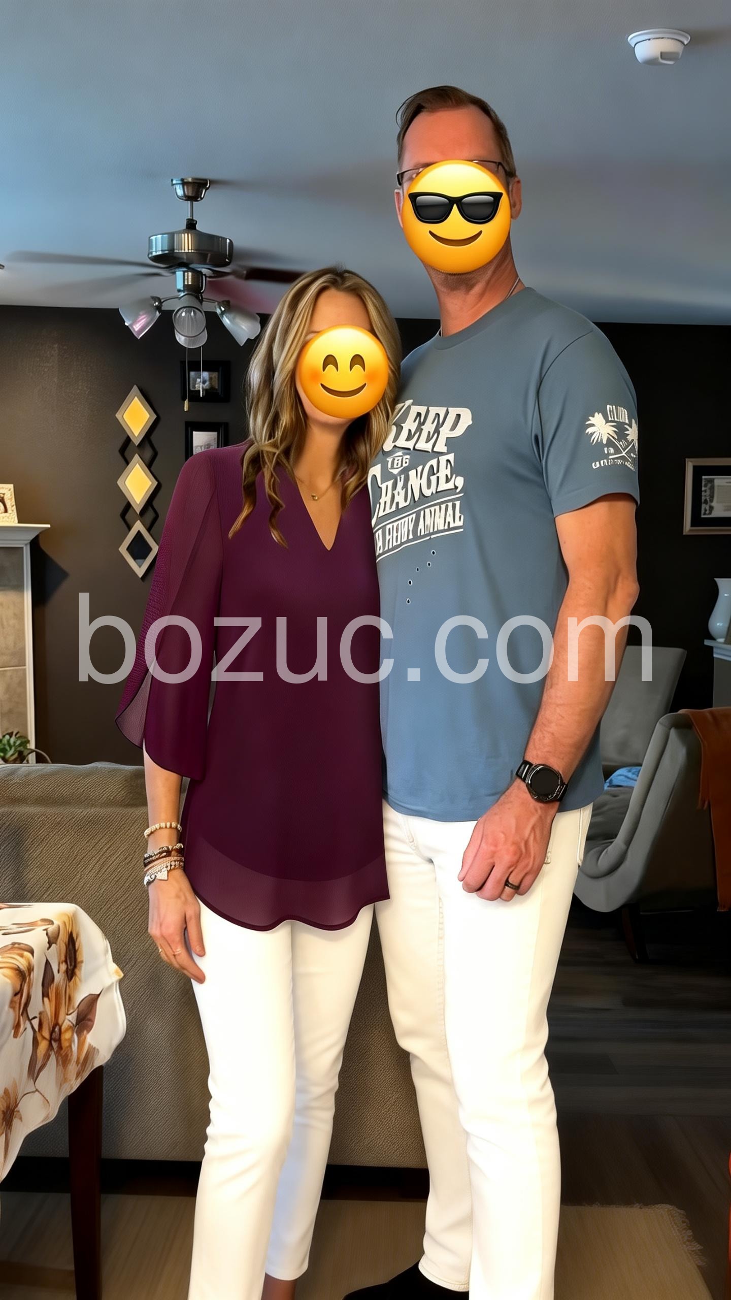 I absolutely love this blouse! The plum color is rich and beautiful. The double-layer design is perfect because it gives that elegant sheer look without being see-through. Fits true to size and hides my tummy perfectly. Highly recommend!