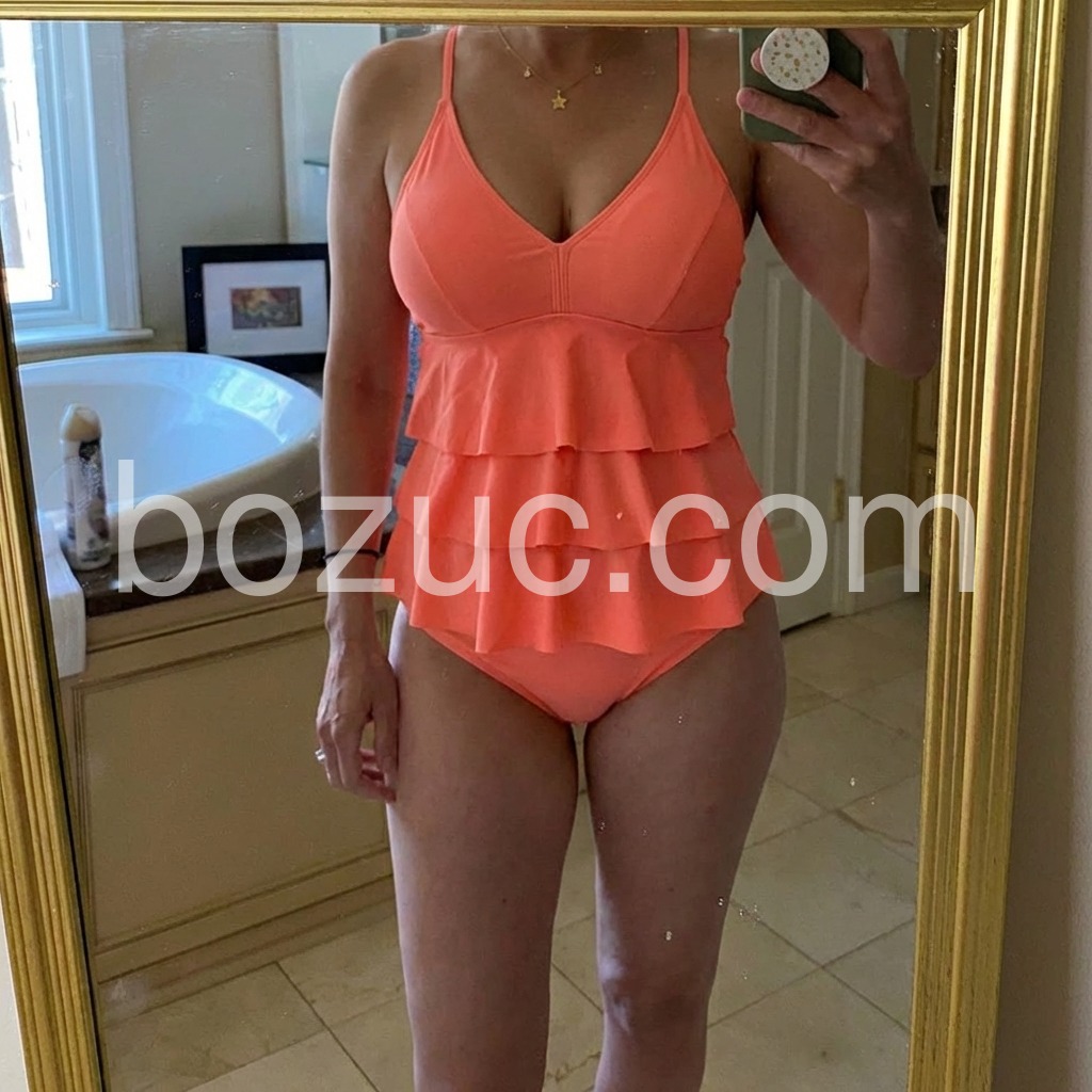 I was pleasantly surprised by how much I like this suit. For reference I am 5’1” and 121lbs. This suit did a good job of hiding my mom (of twins) stomach.