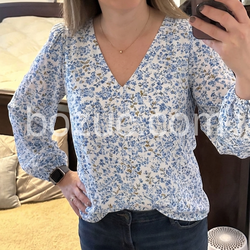 This blouse is absolutely gorgeous! The blue floral print is so delicate and perfect for spring. I wore it out to brunch and got so many compliments. Fits true to size.