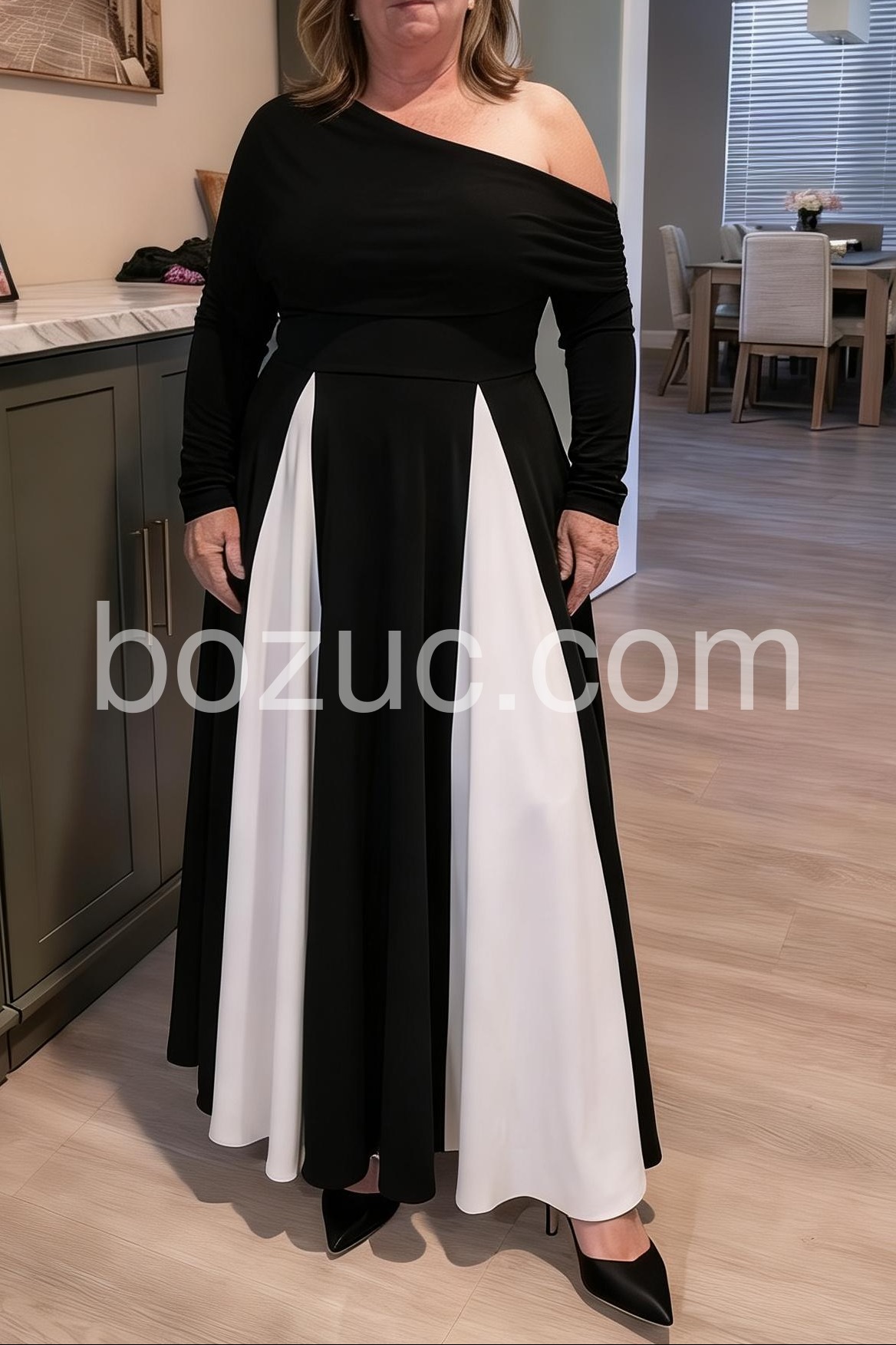 This Black and White Color Block Maxi Dress is the perfect blend of modern and classic styles. Its sleek and stylish design is perfect for any occasion and its color blocking adds a touch of elegance. Made with high-quality materials, it offers both comfort and sophistication.