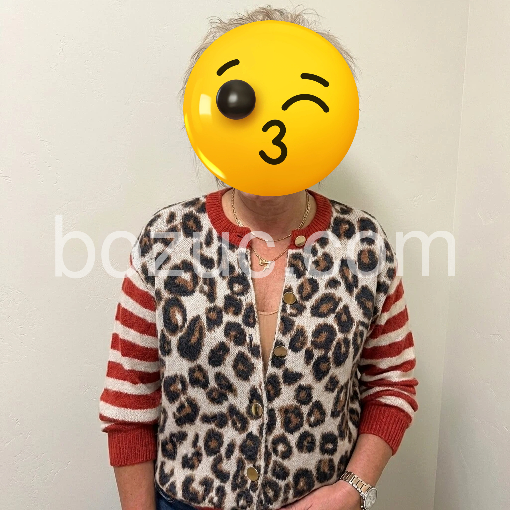 The fit is great—comfortable through the body without feeling bulky. The neckline and button placement look nice, and the leopard pattern is super cute. Soft knit and great quality.