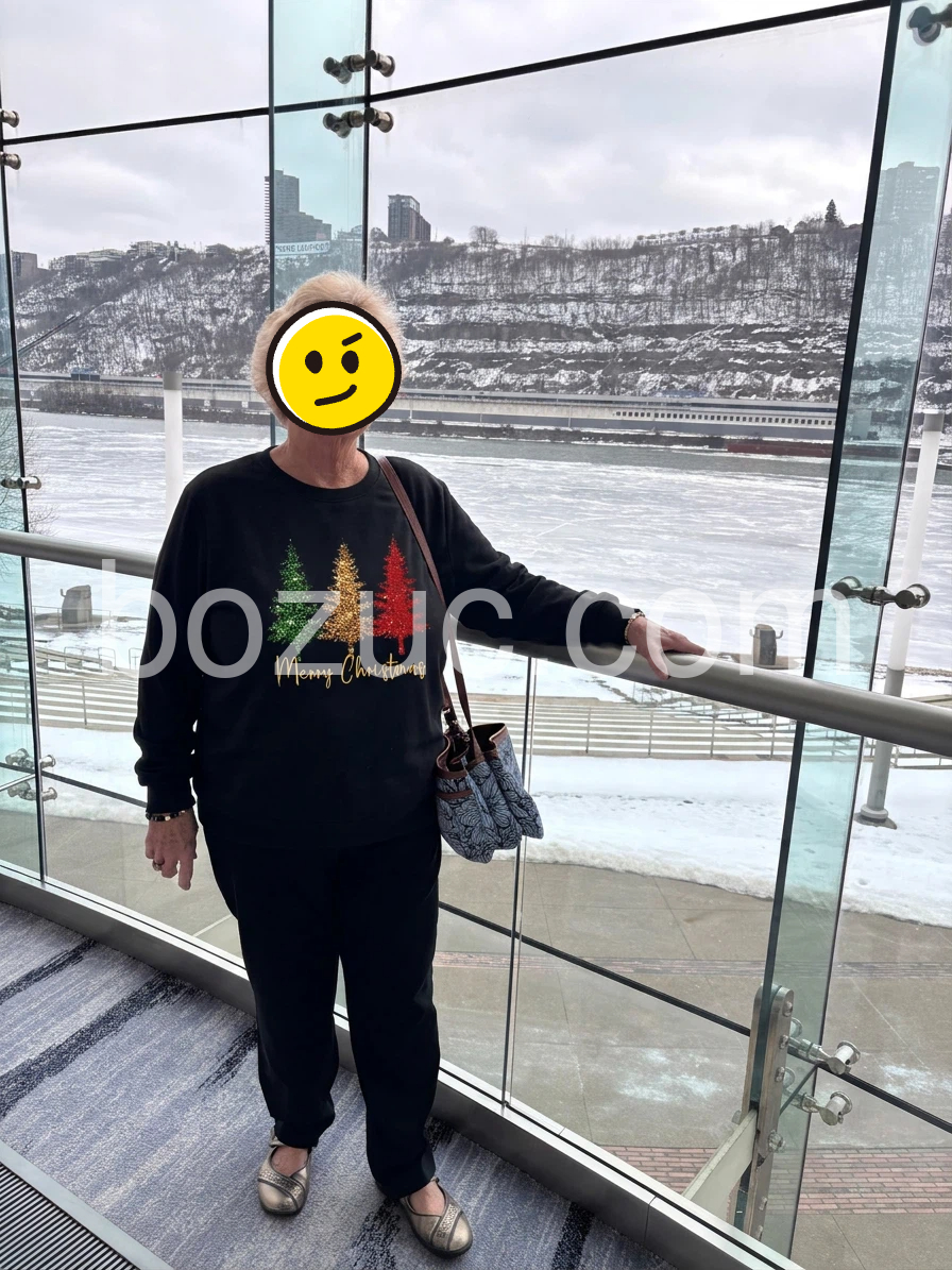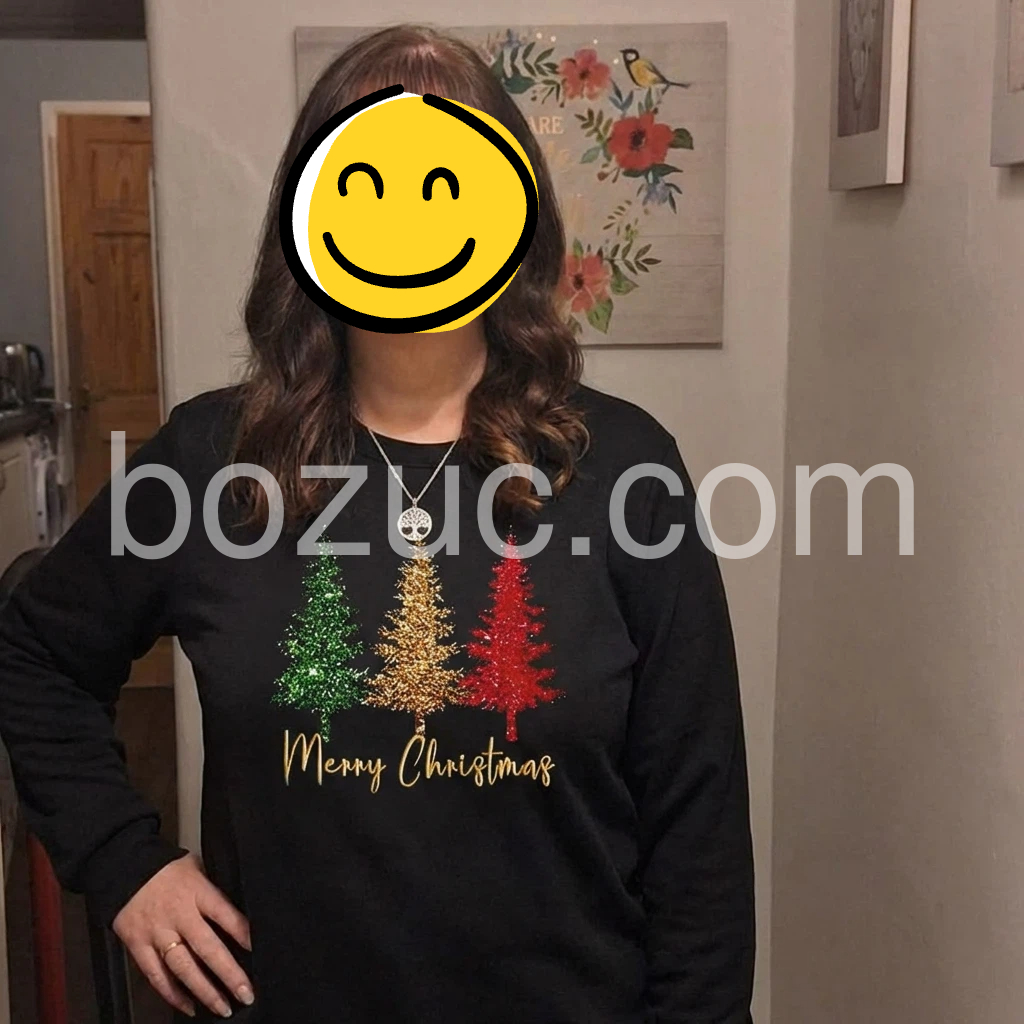 I wanted something cozy and cute for the holidays, and this sweatshirt nailed it. The black base makes the colorful tree lights stand out perfectly, and the design looks cheerful rather than dull. When I tried it on, it felt comfortable right away, and the sleeves are a great length for layering. I can’t wait to wear it during Christmas week.