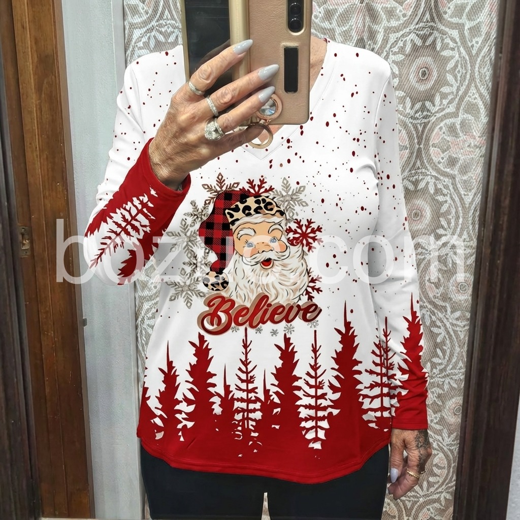 Love this shirt. Perfect for the holiday season for casual outings. Fits perfect.