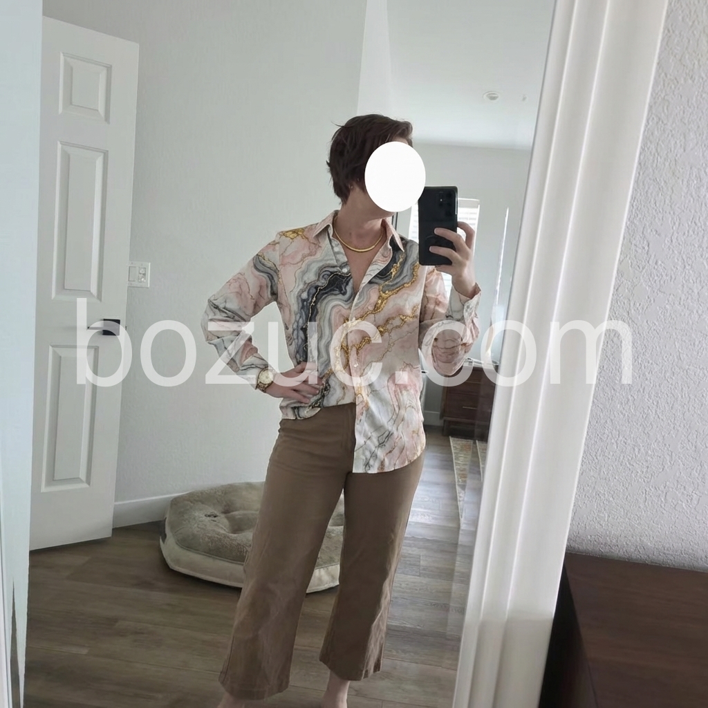 I was hesitant to buy clothing online, but this top exceeded my expectations. It feels silky and drapes beautifully. The sizing chart was accurate. It is a fantastic statement piece for my wardrobe.