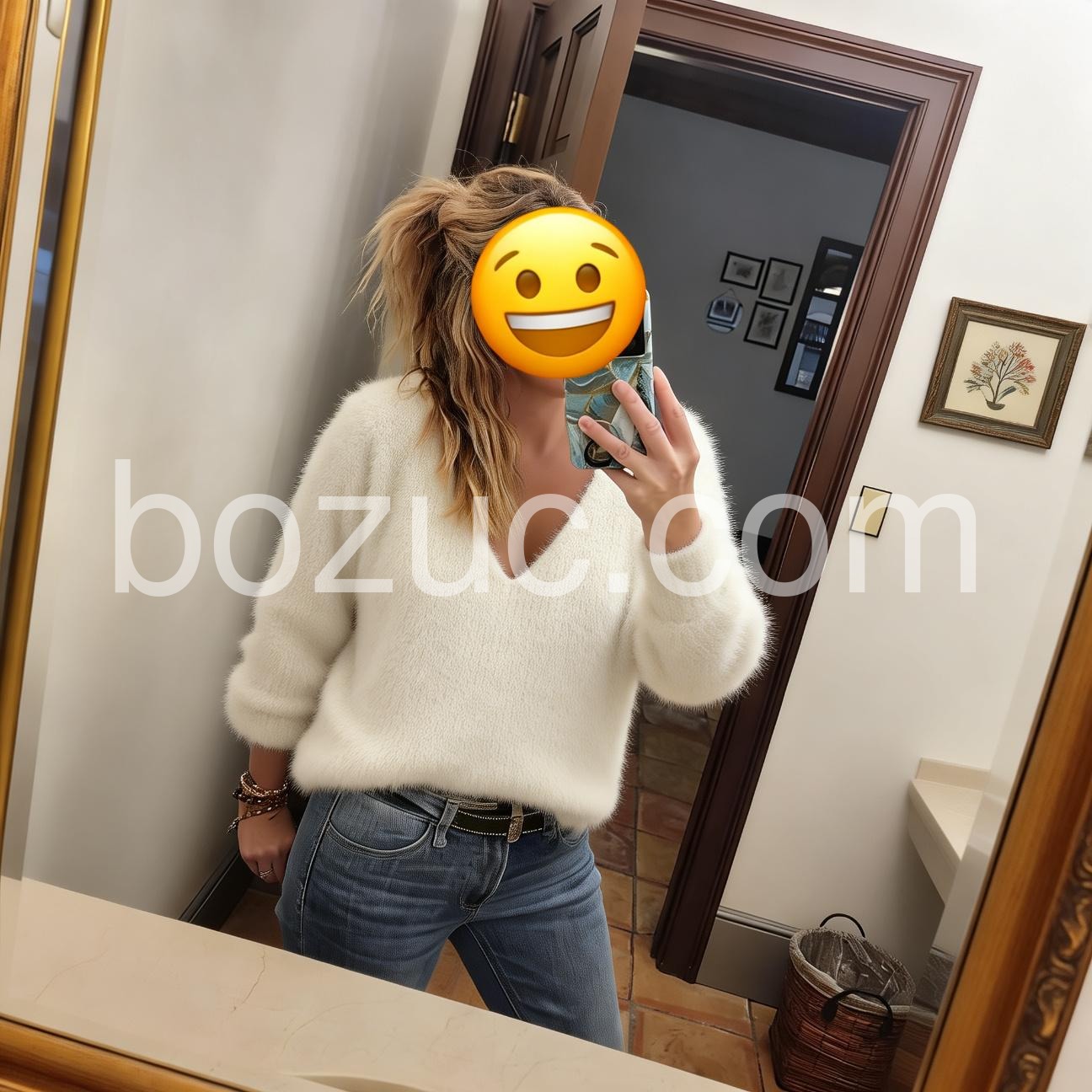 Warm and fuzzy, this precious pullover can be styled two ways! Designed with a V-cut, the knit sweater can be donned with a plunging front or worn backward for a sophisticated bateau neckline. We love how it shows off an unexpected hint of skin during colder months. Wear it for day with skinny jeans and a studded belt and at night with a sheer lace layer and a high-slit skirt.