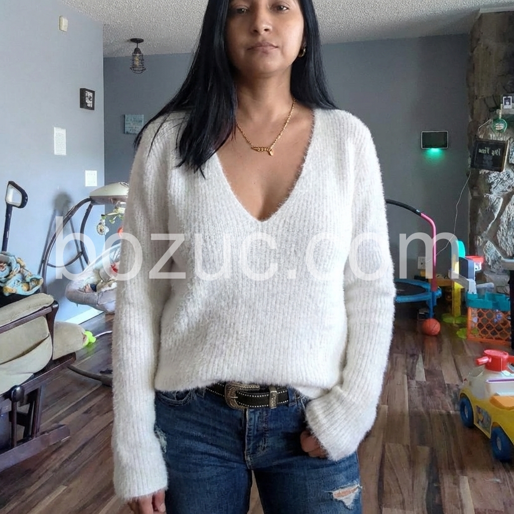 Back and Forth Deep V Neck White Sweater