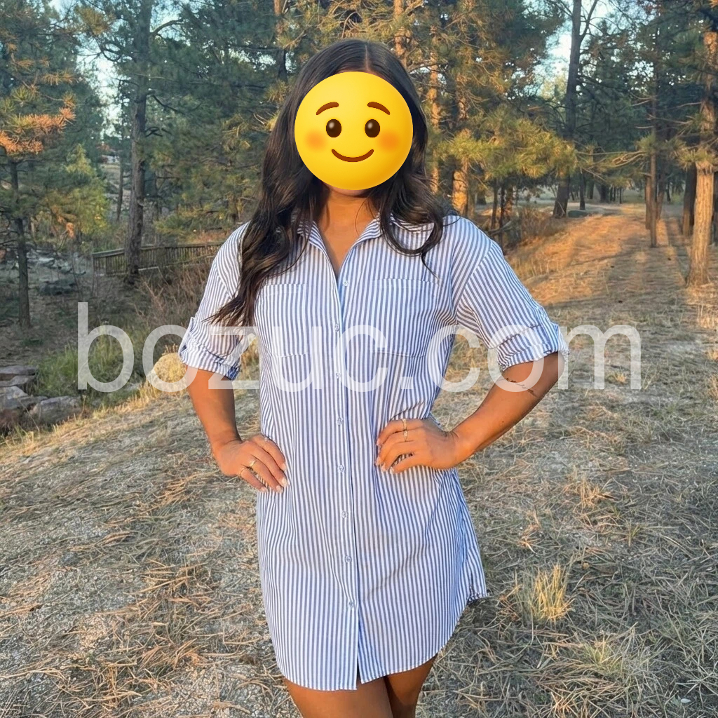 Blue White Stripe Button Down Shirt Dress