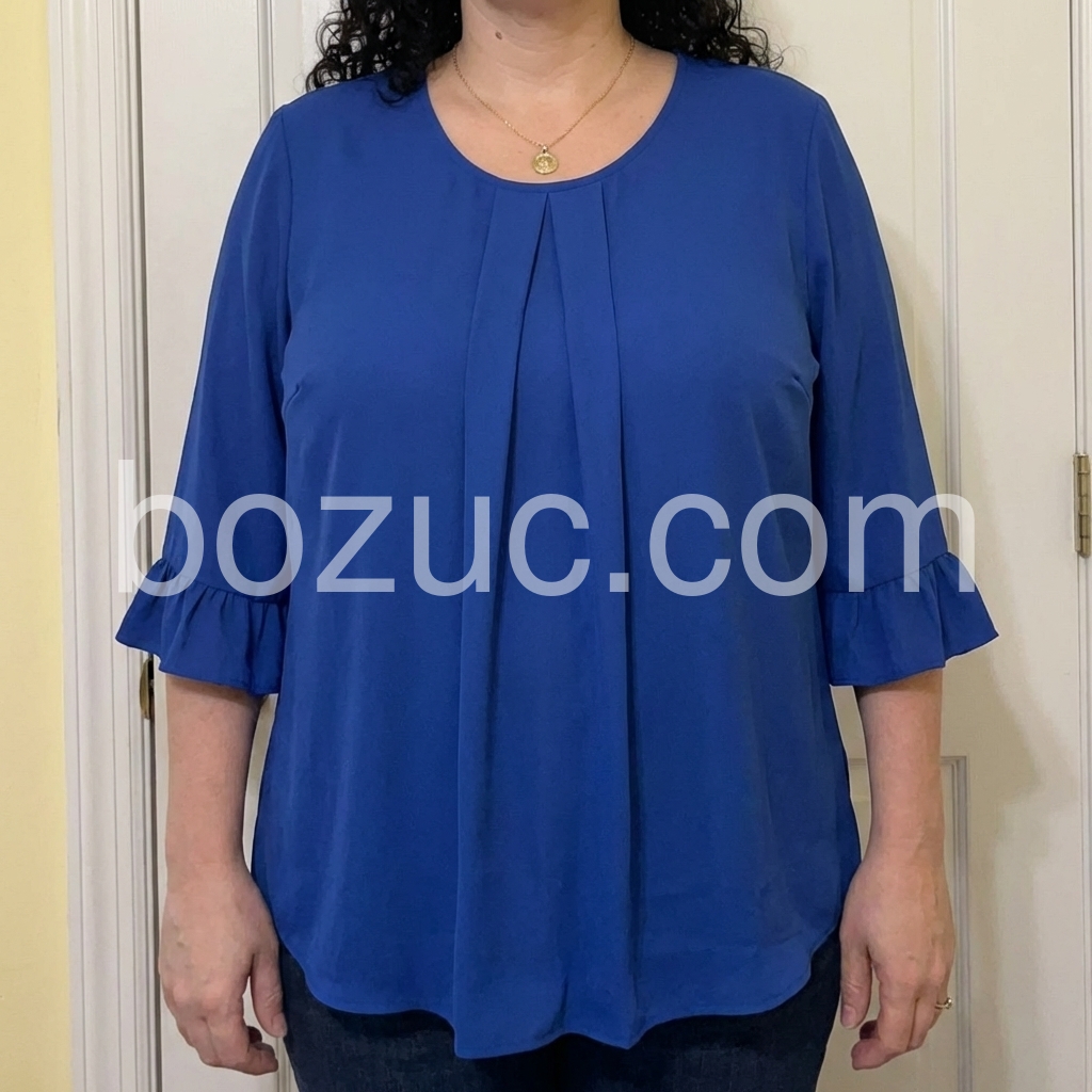 Elevate your everyday style with this gorgeous royal blue blouse. It features delicate front pleats and flirty ruffled cuffs, adding a touch of elegance to your look.