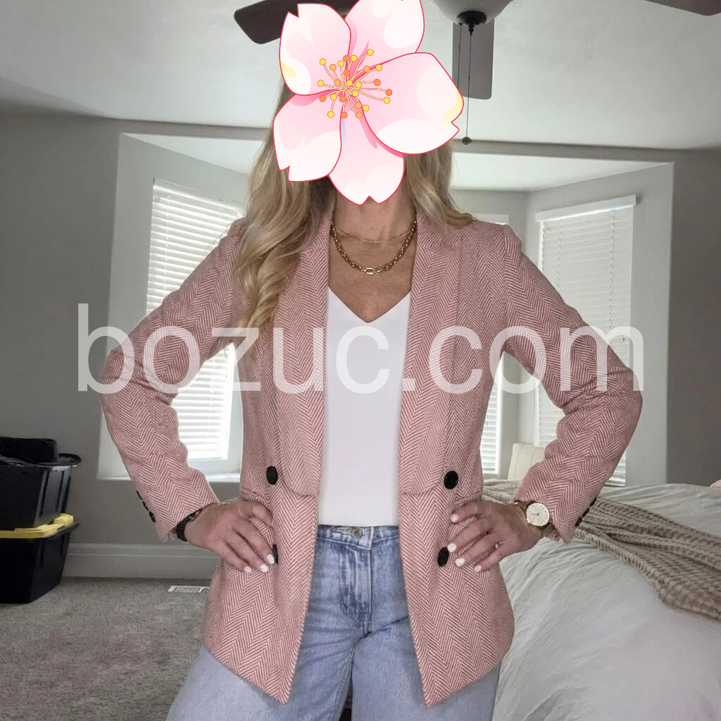 Absolutely love this blazer! It is perfect for wearing to the office with slacks or dressing down with jeans for a weekend brunch. The pink herringbone pattern is so unique and chic.