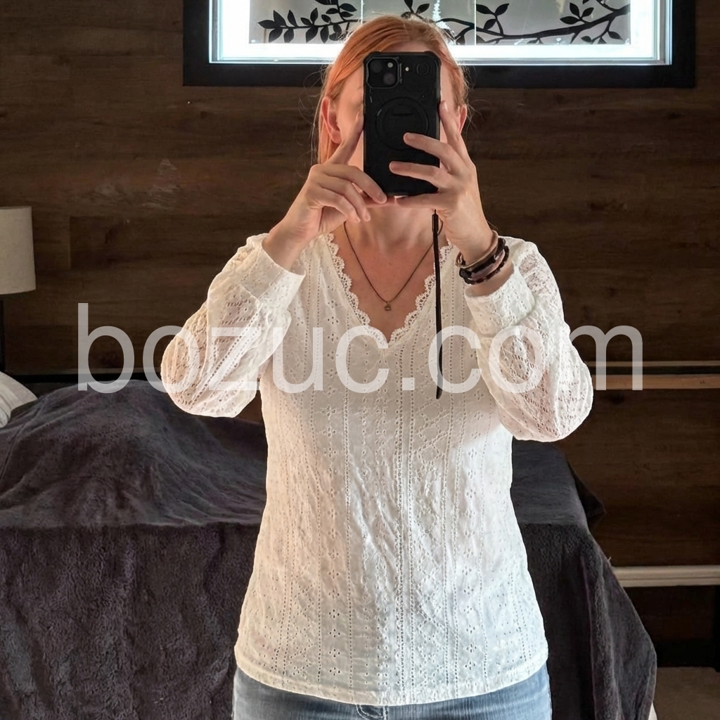 Experience comfort and style with our White Plain V-Neck Long Sleeve Top. Made with soft fabric, this top features a flattering V-neck design and long sleeves for a chic look. Perfect for any casual or dressy occasion, it's a versatile addition to your wardrobe.