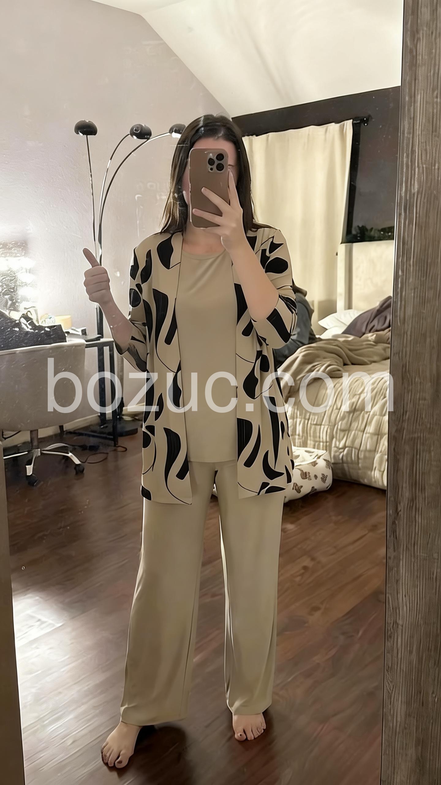 I was hesitant to buy clothing online, but this set exceeded my expectations. The taupe color is stunning and very neutral. The wide leg pants are flowy and do not cling to my thighs. It feels like wearing pajamas but looks incredibly chic for the office.