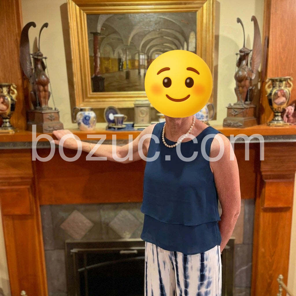 This set is stylish and comfy. The navy sleeveless top drapes beautifully over the matching blue-tade pants, creating a relaxed yet polished look. The fabric feels smooth and breathable, perfect for warm days. Accessories like the pearl necklace elevate the outfit nicely. Easy to wear, true to size, and the overall quality feels great. Fast shipping and friendly service too. Highly recommended.